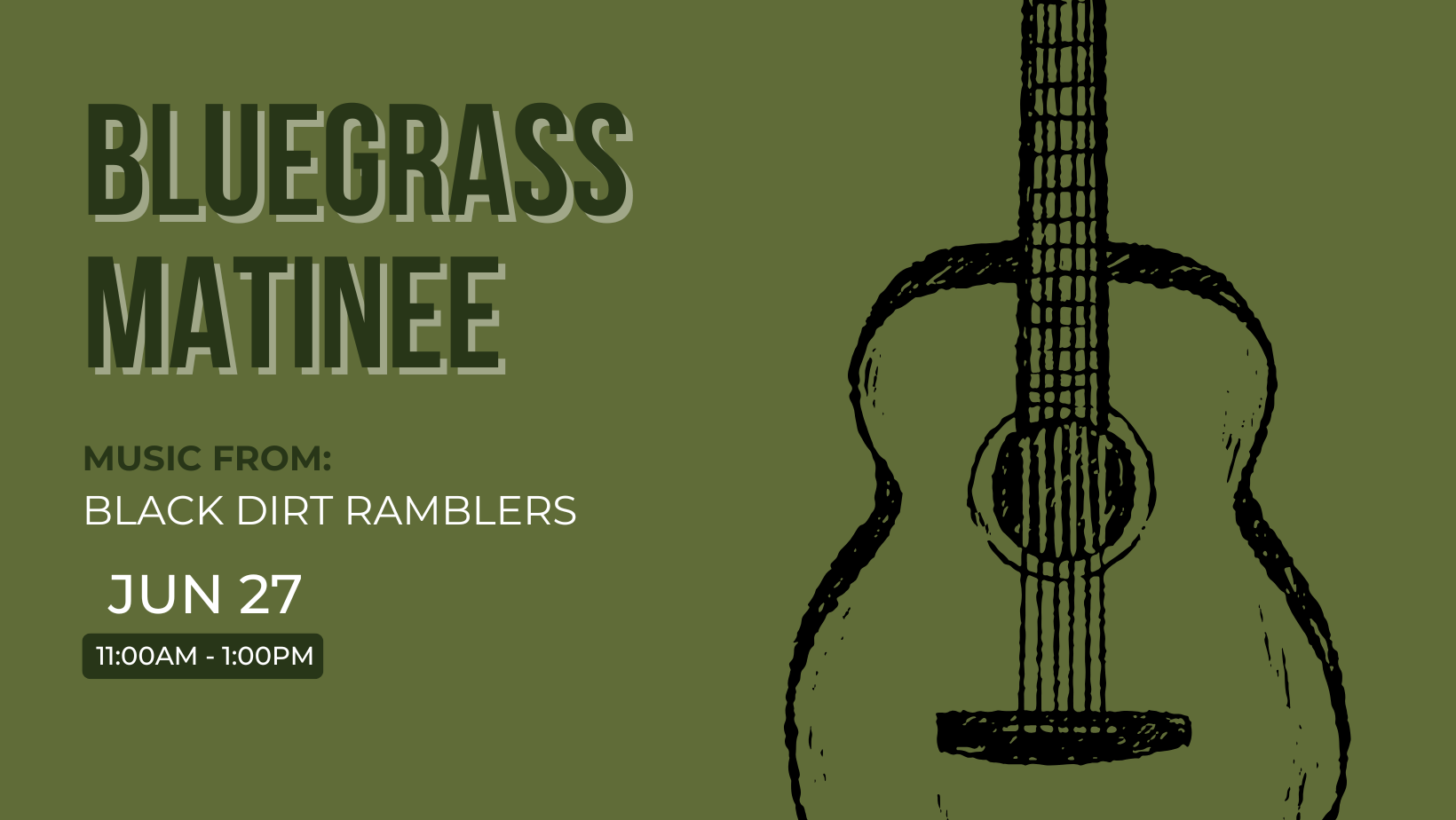 Join us on Saturday, June 27th from 11:00 AM - 1:00 PM for our Bluegrass Matinee with music from Black Dirt Ramblers. Catch some live music and then be back home for your Saturday afternoon nap.